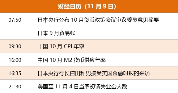 FXTM富拓集团资讯东方财富财经早餐 11月9日周四