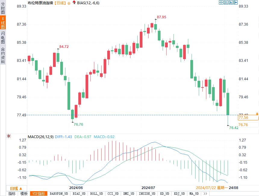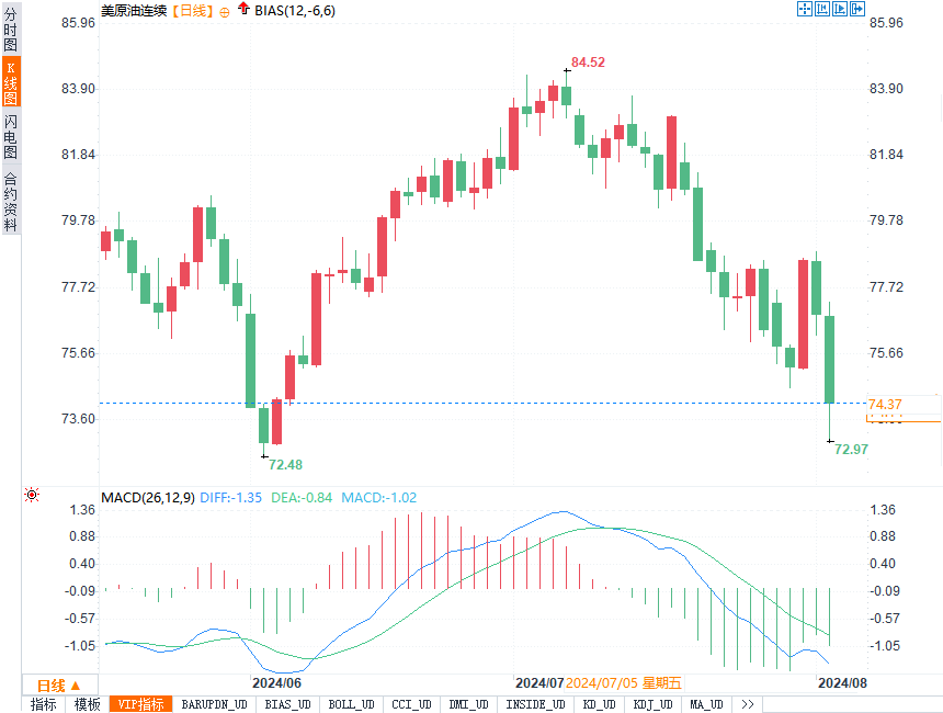 本周原油市场的主要看点集中在美国经济数据的疲软和中东地区的不稳定局势上。美国7月新增就业岗位低于预期,失业率上升至4.3%,引发了市场对经济衰退的担忧。同时,中东紧张局势的加剧也为原油市场带来了额外的压力。在这些因素的共同作用下,油价周五收于1月份以来的最低水平。