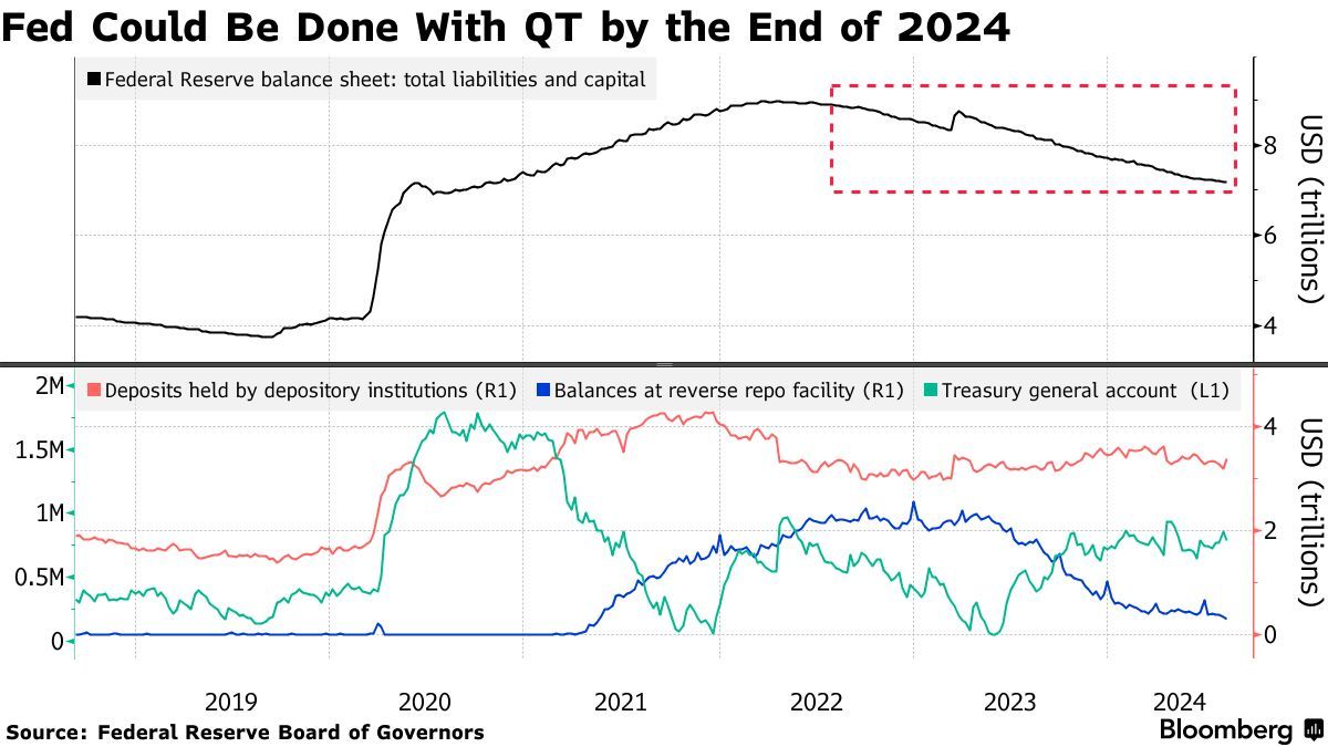 自2022年6月起,美联储开始实施量化紧缩政策,即缩表(QT),但是自今年以来美联储缩表进程已逐渐放缓。有华尔街策略师表示,尽管缩表步伐在近期确实如美联储声明的那样有所削减,但“急刹车式”突然间宣布缩表结束的可能性不大。