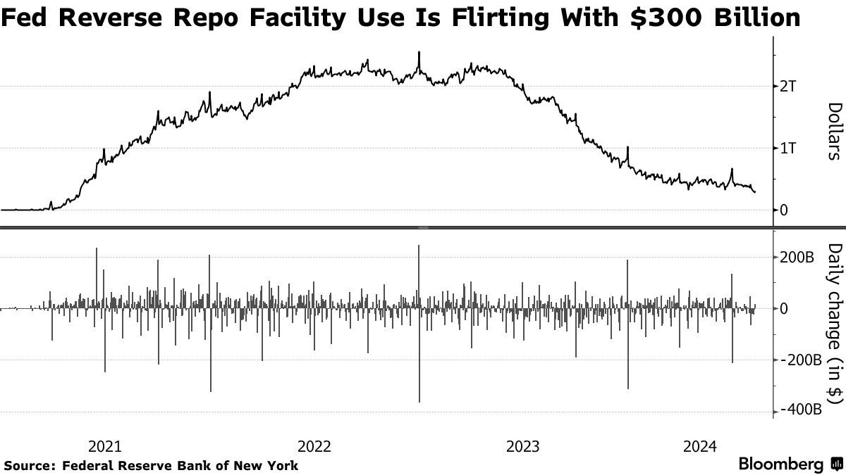 与此同时,上文所述的被视为衡量金融体系流动性过剩的指标——美联储隔夜逆回购工具(RRP)的余额在本月每个交易日均降至2870亿美元,为三年多来的最低水平。周四,这一数字小幅上升至3030亿美元。