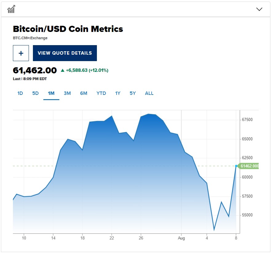 加密货币从本周早些时候的大幅抛售中恢复上涨,比特币周五一举突破62000美元。