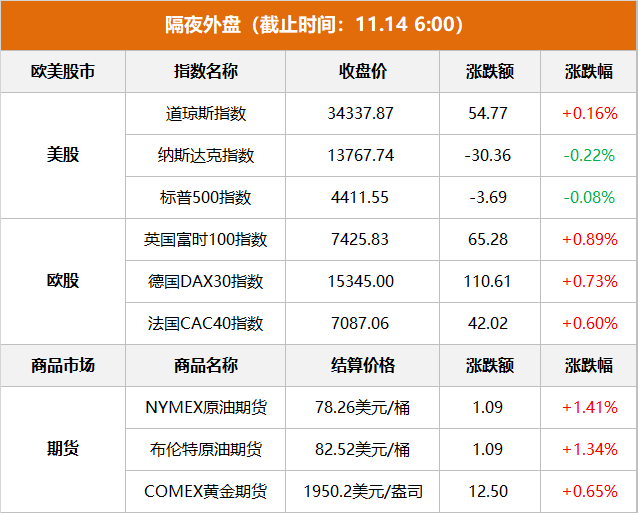 FXTM富拓集团资讯东方财富财经早餐 11月14日周二