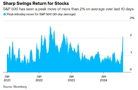 更重要的是,虽然标普500指数已从周一3%的暴跌中回升——当时正值日元套利交易大平仓引发全球抛售,但期权市场上的专业人士似乎并不完全买账。