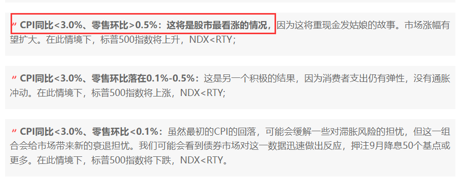 当然,在金融市场上,人们在昨夜显然并没有去深入考虑那么多,因为一份火热的零售数据已经足以令他们感到欣喜。如同我们在周三前瞻中介绍到的那样,本周CPI和零售销售这两大指标的表现,落在了摩根大通所作的九大情境预测中,最为乐观的一个情境里: