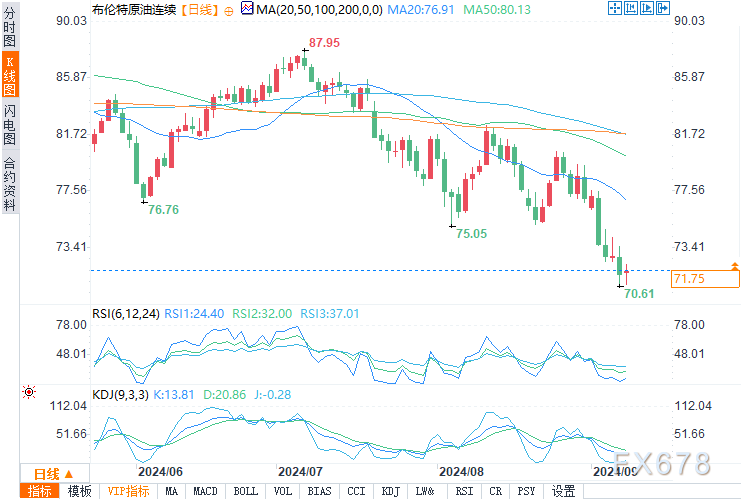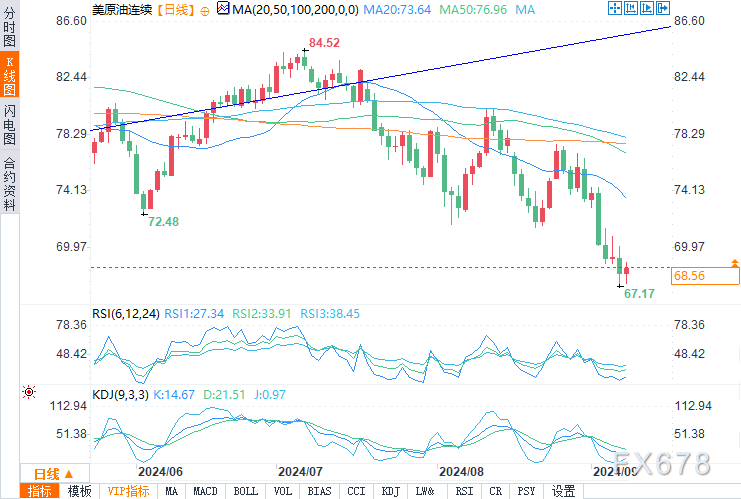 周一(9月9日),由于交易员期待市场重要报告,油价在上周跌至一年多以来的最低点后出现反弹。 纽约商品交易所10月交割的西得州中质原油(WTI)期货价格收涨 1.04 美元,涨幅超过 1.53%,收于 68.71 美元/桶。截至发稿,现报 68.56 美元/桶。
