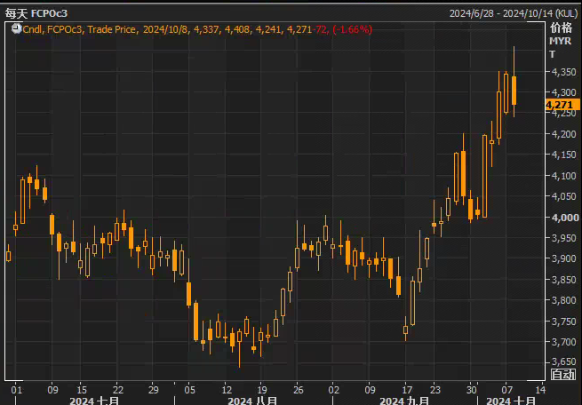 周二(10月8日),马来西亚棕榈油期货市场出现回调,12月交割的基准合约价格下跌1.66%,收于每吨4272林吉特(约合996.97美元)。此次下跌主要受投资者获利回吐、芝加哥豆油和原油价格下跌的影响。在此之前,棕榈油价格刚刚触及六个月高点,十月以来的涨幅近7%。