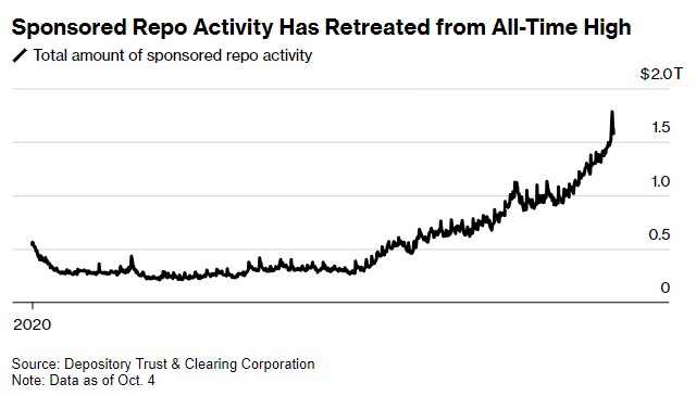 美国存托和清算公司的数据显示,截至9月30日,保荐回购活动总计1.78万亿美元,10月4日回落至1.58万亿美元。