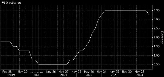 韩国央行下调基准利率,当地房地产市场出现降温迹象,且通胀压力大幅缓解,当局终于可以将重点转向支持经济运行。