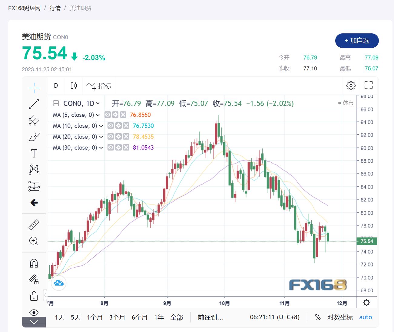 (美国西德克萨斯中质(WTI)原油期货走势图,)