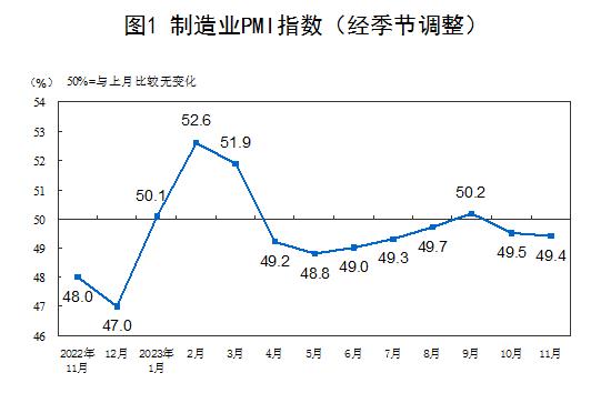 11月份,制造业采购经理指数(PMI)为49.4%,比上月下降0.1个百分点,制造业景气水平略有回落。