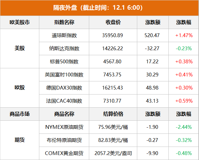 美股:道指上涨520.47点,收于35950.89点,涨幅为1.47%;标普500指数上涨17.22点,收于4567.80点,涨幅为0.38%;纳指下跌32.27点,收于14226.22点,跌幅为0.23%。