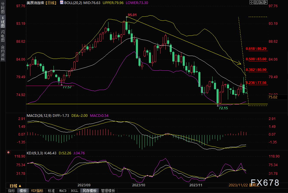 OPEC+成员国达成减产协议,但未达市场预期,导致周四(11月30日)油价下跌逾2%。周四盘中早些时候,国际油价一度上涨逾2%,美原油甚至逼近80关口。 11月份美国西德克萨斯中质原油期货周四结算价收跌1.90美元/桶,报75.96美元/桶;收盘价报75.60美元/桶,较周三收盘价下跌2.68%,11月份跌幅7%。