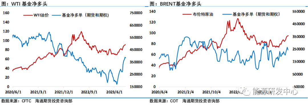 周六巴以之间突然爆发了50年最严重新一轮冲突,已造成双方逾400人死亡,事件的出现正处在油价比较敏感的时间节点,目前冲突还没有扩散到周报国家和地区,但因为期间涉及沙特、伊朗等中东地区核心产油国利益,一旦冲突升级可能再次引发原油市场的巨震。而在此事件之前原油已经是在国庆期间的暴跌行情成为了投资者关注的焦点。事实上原油在最近两年的十一假期期间都是上演了非常夸张的单边剧烈波动,不同的是2022年是单边暴涨近14%,而今年则是单边大跌超10%。显然这种短期内的剧烈波动是非同寻常的,尤其是在我国重要节假日期间,没有出现特别重要的突发事件的情况下出现的大幅单边行情,通常被国内投资者戏称为“挖坑行情”。在全球经济一体化背景下,核心国际化商品面临的假期价格波动风险是国内投资者需要面临的重要挑战,这或许也是我国期货市场后续需要考虑完善提升的方向。 这个假期大宗商品市场有点冷,原油更是以大跌超10%领跌市场,比原油表现更差的则是欧美成品油市场,尤其是美国汽油一度跌超15%。10月4日欧美原油价格单日暴跌超5%,时隔5个月之后原油市场再次出现了超过5%的暴跌行情,这一跌重挫了多头士气,投资者对后市预期受到明显影响。事实上根据欧美市场持仓报告显示,在油价暴跌之前投机资金净多头寸已经开始减少,这也反映了资金在高位已经开始区域谨慎,数据显示截至10月3日当周,布伦特原油期货投机性净多头头寸减少25,207手合约至218,335手合约,WTI原油期货投机性净多头头寸减少5,877手至279,759手。不出意外随后油价大跌之际预计多头将出现更加明显的大幅离场局面。