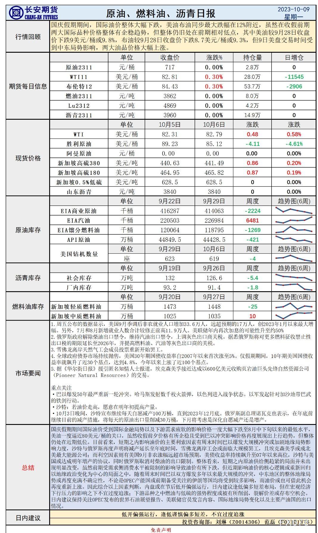 FXTM富拓集团资讯长安期货10月9日原油早评:中东局势再度爆发,内盘或反应假期波动后偏强运行