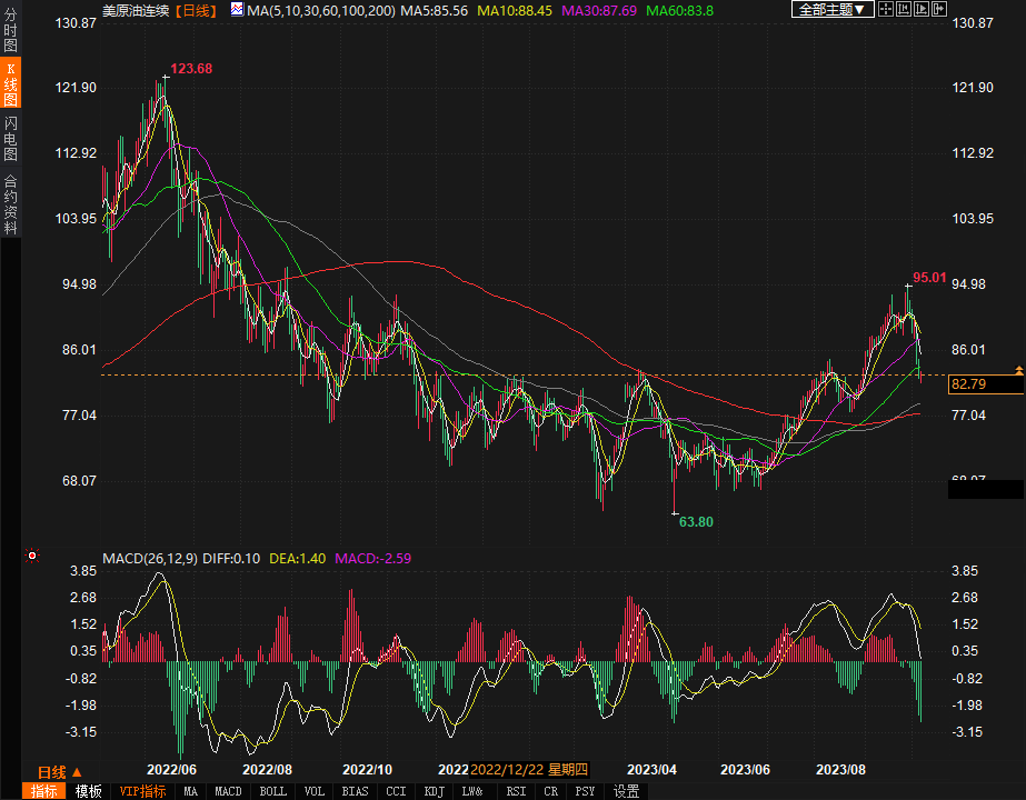 周五(10月6日),油价周五上涨,但仍录得自 3 月份以来的最大单周跌幅,原因是俄罗斯再次部分取消燃料出口禁令,加剧了宏观经济不利因素带来的需求担忧。 WTI 11月原油期货收涨0.48美元,涨幅0.58%,报82.79美元/桶,本周累计下跌8.81%。