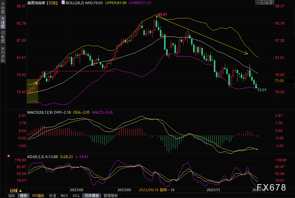 周二(12月5日),OPEC+会议尘埃落定后,WTI石油价格冲高回落。随着美元走强,美国与其他国家的利差扩大,石油可能随着SPDR战略储备的补充而迎来供应增加的压力。由于对OPEC+减产的疑虑以及对需求的担忧,油价连续第四天下跌,盘中刷新五个月低点72.01,收报72.05美元/桶,这是自7月6日以来两个原油基准的最低收盘价,对于WTI来说,这是自5月份以来首次连续四天下跌。这一情况归因于美国石油出口接近历史高位,国内原油产量创下历史新高,掩盖了沙特阿拉伯关于OPEC+将兑现减产计划的承诺。 美国西德克萨斯中质原油(WTI)收跌0.72美元/桶,跌幅1.0%,收报72.32美元/桶。截至发稿,现报72.16美元/桶,跌幅0.23%。
