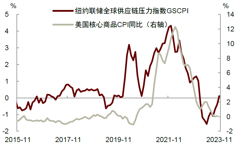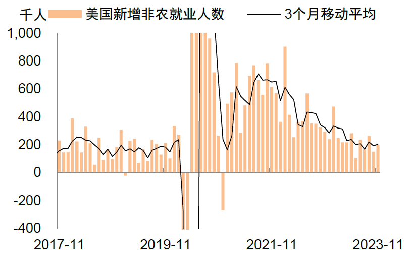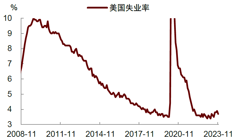 自上次11月FOMC会议以来,美国经济数据相对三季度的强劲走势有所趋缓,但整体仍有韧性。10月以来数据偏弱更多反映了美债利率冲高、汽车工人罢工、以及地缘冲突事件等冲击的扰动,体现在对于消费者情绪、制造业PMI等“软数据”以及制造业生产和就业等“硬数据”的负面影响。但从最新情况来看,这些冲击的影响大多渐弱,美债利率大幅回落、金融条件边际转松,罢工告一段落,地缘冲突也未导致能源价格大幅上涨。