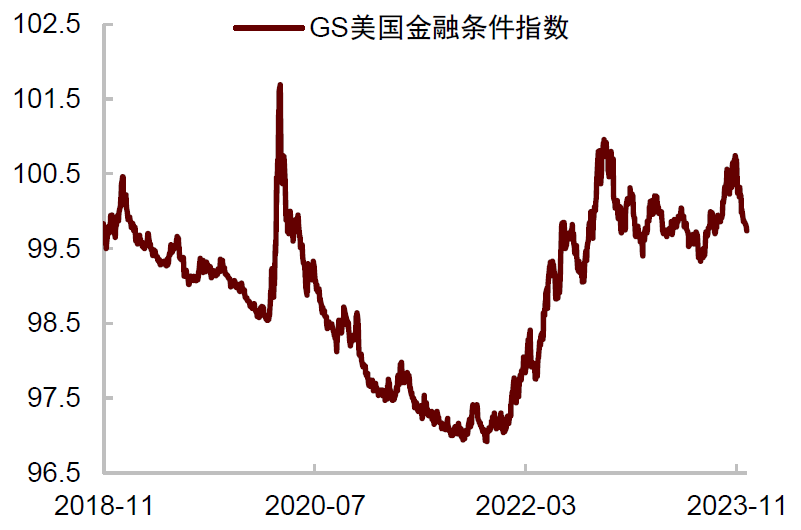 另一方面,随着数据偏弱、通胀回落,以及联储鸽派发言,目前金融条件已较11月FOMC会议时大幅放松(图表4)。如果金融条件放松导致美国经济再度加速走强,形成“不着陆”的情形,这将是美联储不愿意看到的。因此我们判断,美联储虽然在行动上会更加谨慎,不会轻易重启加息,但在态度上会相对偏鹰,在没有预计经济会快速下滑、再通胀风险仍未完全解除之时,不会对明年降息有太多的指引和暗示。