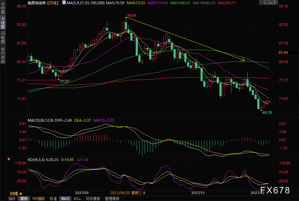 本周,沙特能源部长将就进一步减产或延长至2024年的可能性提供最新消息,引发了对原油市场的关注。供应担忧和需求潜在反弹推动着原油价格持续上涨,但市场参与者表现出谨慎和犹豫。根据IG客户情绪显示,目前交易员对WTI的净空头比例为79%。WTI原油触及日内高点71.81美元/桶,显示市场参与者的谨慎和观望态度。