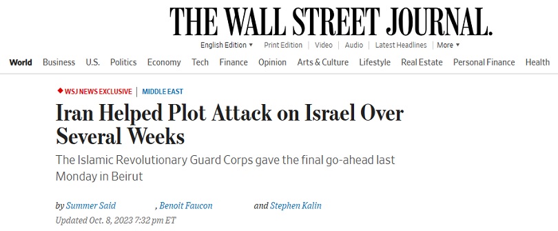 #巴以冲突# 美国《华尔街日报》当地时间周日(10月8日)最新报道称,据哈马斯和另一个伊朗支持的激进组织真主党(Hezbollah)的高级成员透露,伊朗安全官员帮助策划了哈马斯上周六对以色列的突然袭击,并在上周一于贝鲁特举行的一次会议上为这次袭击开了绿灯。