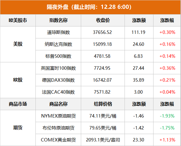 美股:美股三大指数小幅收涨,道指涨0.30%,再创历史新高;纳指涨0.16%,标普500指数涨0.14%。