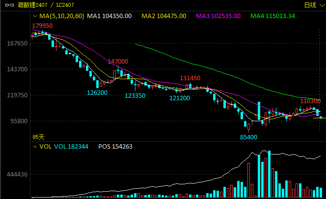 “新能源领域长期向好,但去年年末抢装期结束及今年一季度消费淡季效应,动力电池市场需求转弱,下游材料厂产量呈下行趋势,电池厂减产计划持续,且仍存有一定数量的碳酸锂库存,补货及节前备货意愿不强,短期需求或继续走弱。”王楚豪认为,未来走势依旧偏空。他表示,当碳酸锂价格降至80000元/吨附近,或将迎来振荡筑底反弹或平行整理一段时间。