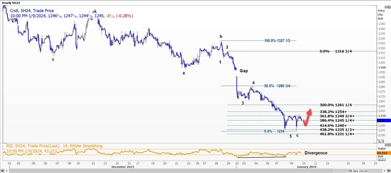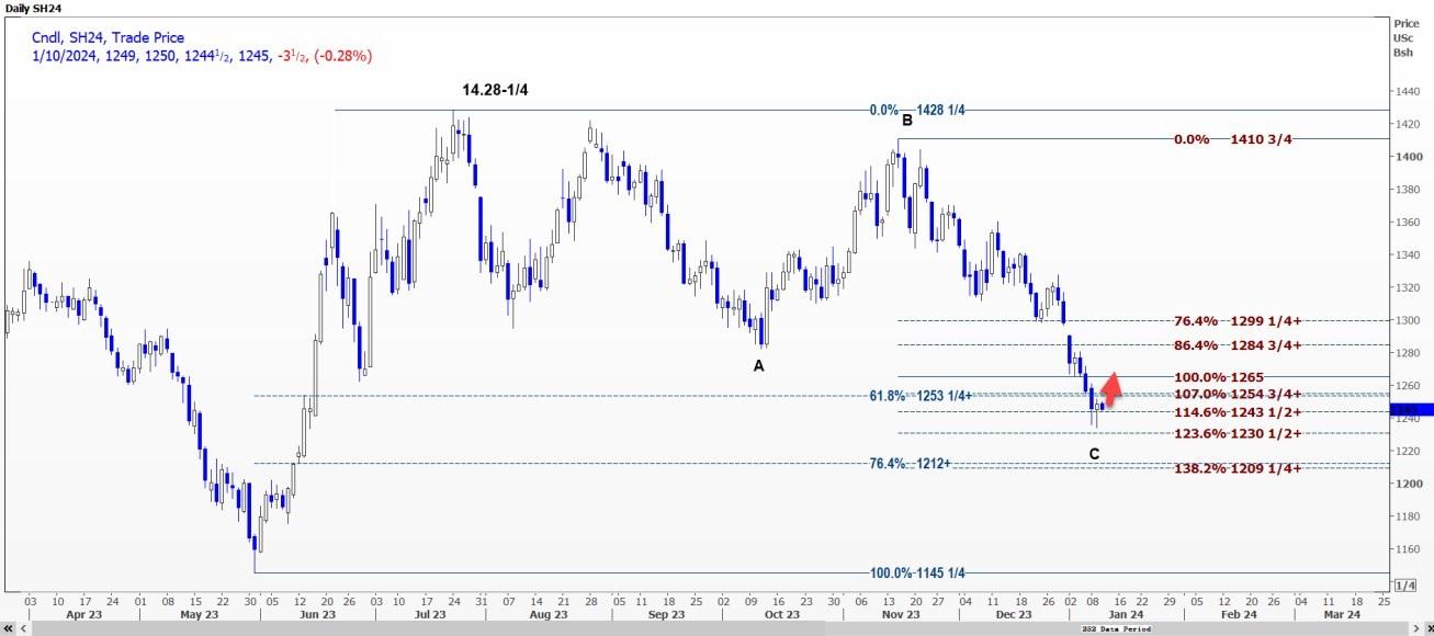 CBOT大豆3月合约SH24可能会在每蒲式耳12.40美元附近寻求支撑,然后重新测试12.4975美元阻力位。