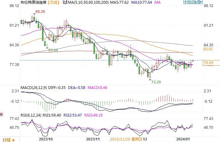 北京时间1月12日15:39 布伦特原油连续 报 79.09 美元/桶