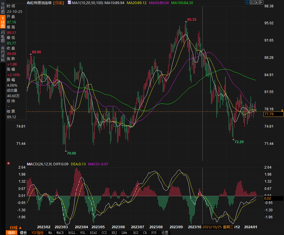 油价周一连续第二天下跌,原因是全球经济逆风给全球石油需求前景带来压力,其影响超过了中东地缘政治担忧和周末俄罗斯燃料出口码头遇袭的影响。 北京时间09:54,布伦特原油价格下跌0.31美元,至每桶77.79美元,跌幅0.5%,上周五收盘时下跌0.54美元。