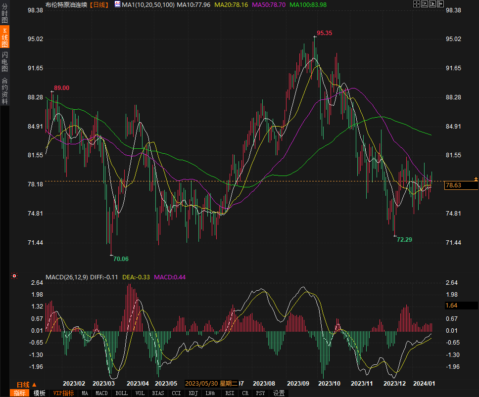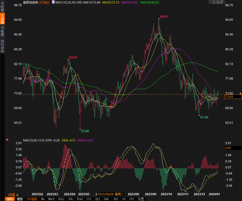 周五(1月19日),原油价格难以延续两天的上涨趋势,并在窄幅交易区间内振荡。对全球经济的担忧抵销了中东紧张局势和石油产量中断的危险,油价小幅走低。油价录得周涨幅,布伦特原油价格上涨约0.5%,而美国基准原油价格上涨超过1%。#原油收盘# 美国西德克萨斯中质原油下跌0.67美元/桶,收于73.41美元/桶。截至发稿,现报73.25美元/桶,跌幅0.95%。