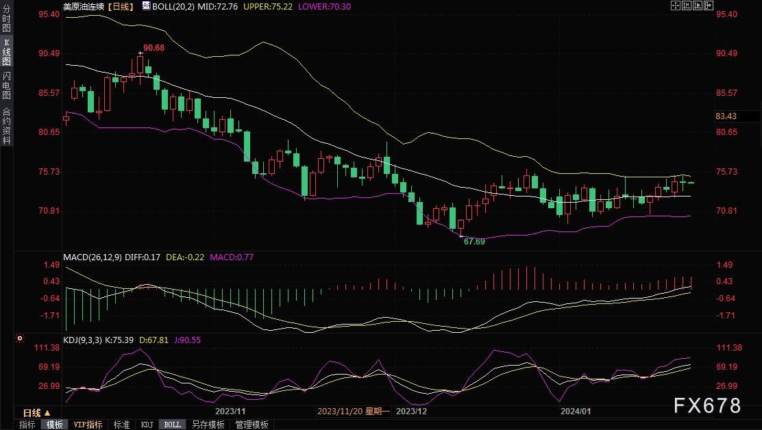 周二(1月23日),由于利比亚和美国北达科他州原油供应得到恢复,国际原油期货价格盘中弱势震荡,收盘时下跌,未能延续周一的涨势。 WTI 2月原油期货收跌0.39美元/桶,跌幅0.5%,收报74.37美元/桶。