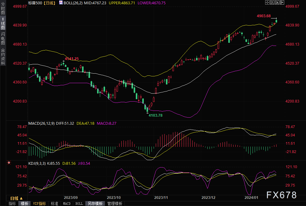 周三(1月24日),在Netflix公司推动的与盈利相关的乐观情绪减弱以及交易员降低了对特斯拉公司季度数据的预期之后,美国股指周三收于盘中高点。电动汽车制造商特斯拉在收盘后公布的业绩令人失望,导致其股价在盘后交易中走低。 标准普尔500指数周三盘中一度刷新历史高点至4903.68点,但收盘回吐涨幅,接近收平。而以科技股为主的纳斯达克100指数则上涨0.5%。美国国债收益率上升,30年期美国国债收益率攀升至今年迄今为止的最高水平。美元现货指数收窄了早些时候的跌幅。 在收盘后公布的企业业绩中,特斯拉预计今年增长放缓,IBM预计2024年自由现金流强劲。投资者现在正在等待周四公布的一系列美国经济数据,包括国内生产总值。目前市场正在继续考虑美联储何时降息。