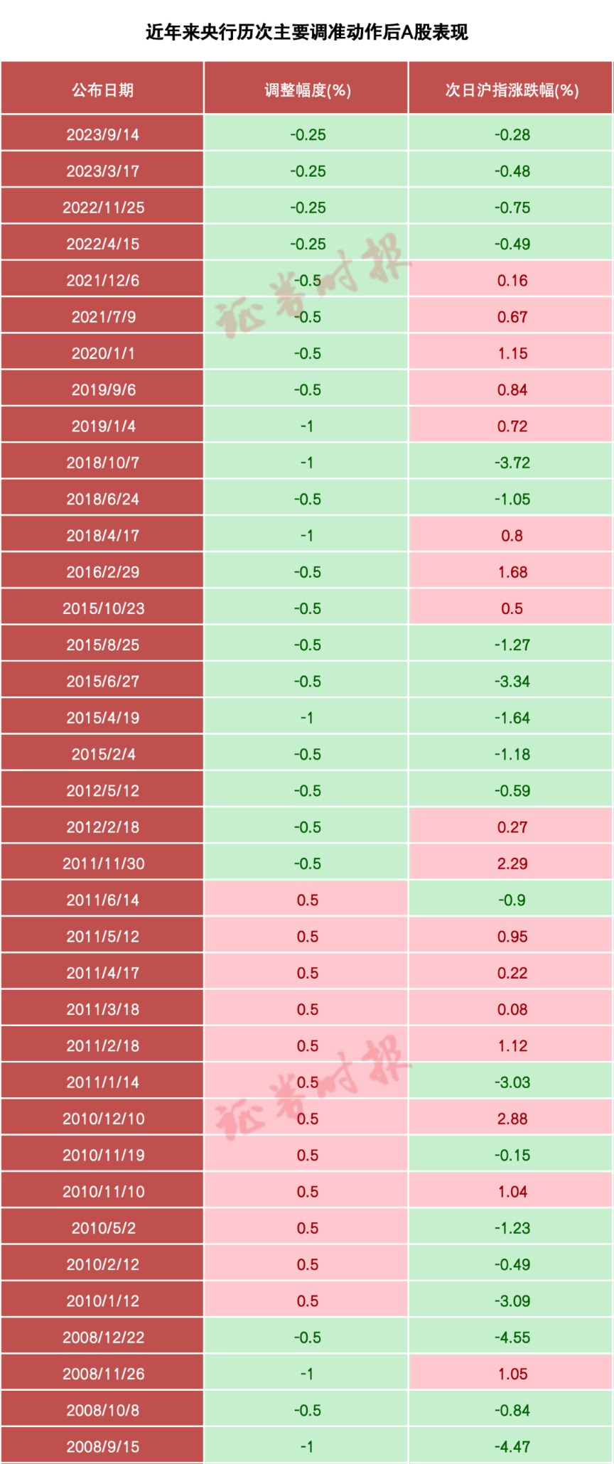 一图看懂央行历次降准后A股市场表现