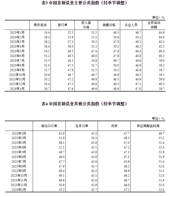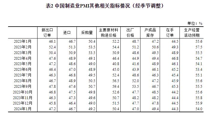 (四)企业预期基本稳定。受春节假期临近及部分行业进入传统生产淡季影响,生产经营活动预期指数为54.0%,继续位于扩张区间,企业对未来市场发展信心总体稳定。从行业看,医药、专用设备、汽车、铁路船舶航空航天设备等行业生产经营活动预期指数位于56.0%以上较高景气区间,企业对近期市场发展预期更为乐观。