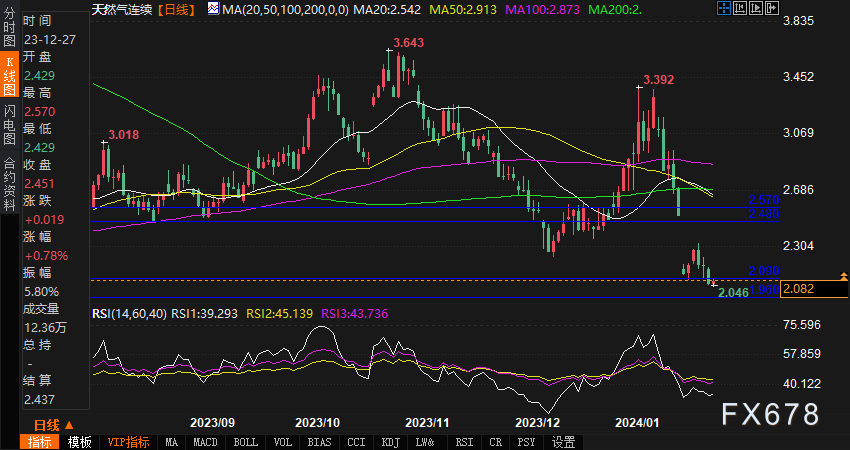 美元与天然气价格呈负相关。在周末三名美国军人在约旦美军基地的无人机袭击中丧生后,资金流入避险资产。美国国防部迅速发表评论,称不寻求报复或扩大在该地区的军事行动。这缓和了酝酿中的避险情绪,推动美元指数回到103.45附近。
