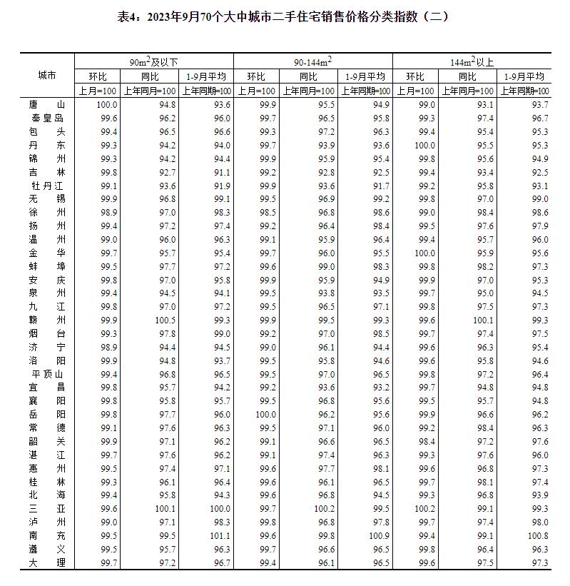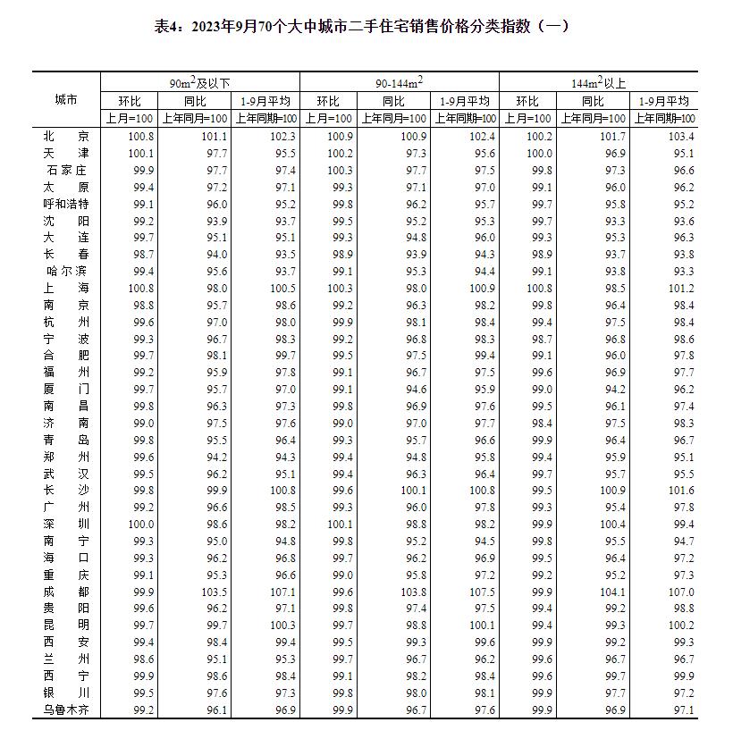 2023年9月份70个大中城市商品住宅销售价格变动情况