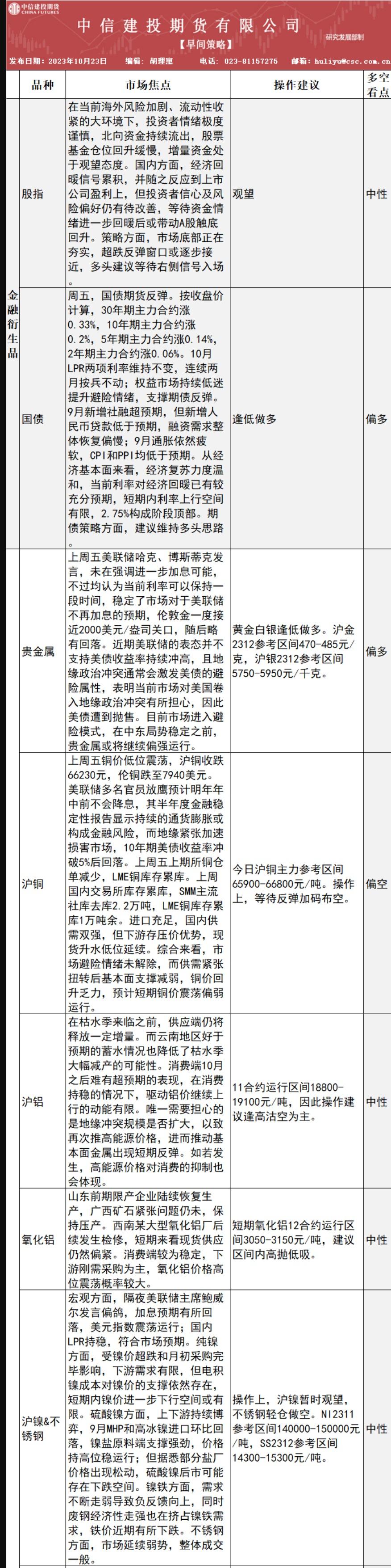 FXTM富拓集团资讯中信建投期货10月23日早间交易策略