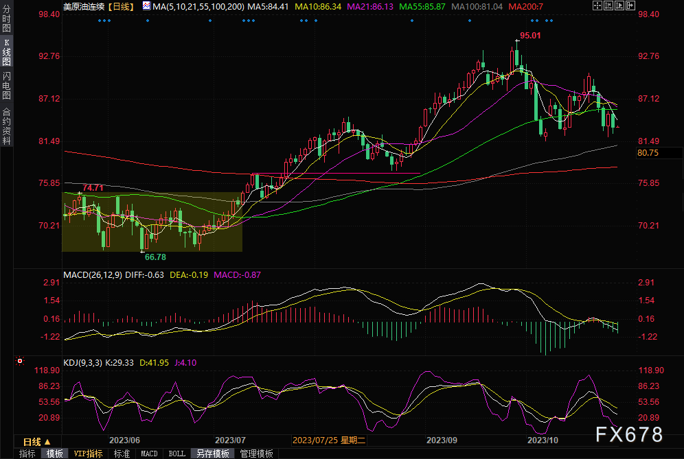 原油价格周四下跌超2%,扭转了前一天的涨幅,有迹象表明以色列正在响应国际呼吁,阻止对加沙的地面入侵,同时美国需求显示出疲软的迹象。 纽约交易的12月交割的西德克萨斯中质原油(WTI)结算价83.21美元/桶,当日下跌2.18美元/桶(或2.5%)。美国原油基准价格在前三个交易日下跌6%后,周三上涨2%。