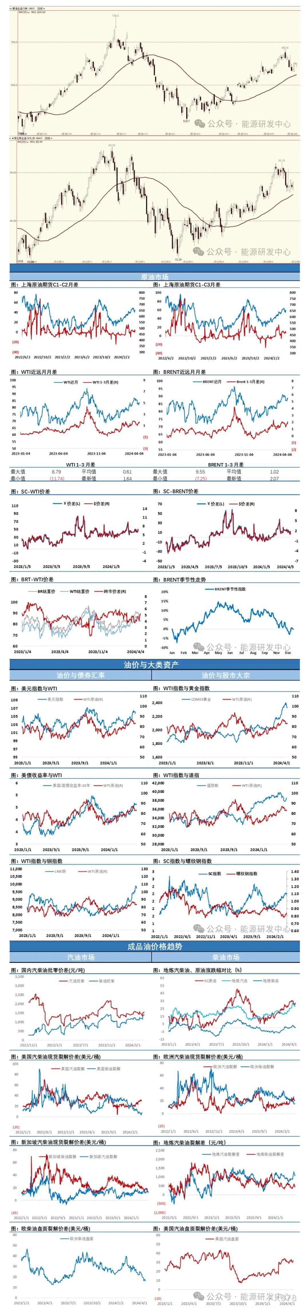 后市观点 地缘因素重回视野,油价也从日内低位大幅反弹,并最终收涨。周四白天油价陷入相持的窄幅震荡中,晚间油价波动幅度明显开始放大,美国公布的美国第一季度实际GDP年化季率初值录得1.6%,为2023年Q1以来最低。美国第一季度核心PCE物价指数年化季率初值录得3.7%,为2023年Q2以来新高,较上月大幅反弹。这样的超预期数据让投资者不得不重新评估宏观层面带来的影响,数据对市场风险偏好有明显压制,经济增速下降意味着需求受影响,而高通胀又进一步让降息预期下降,美元走强,大宗商品回落,油价也从高位回落。 深夜地缘风波再起,以色列总理内塔尼亚胡批准在加沙地带南部城市拉法开展地面行动的计划,市场担忧情绪推动油价从日内低位反弹,并最终收于高位,虽然地缘失控概率下降,但地缘对油市的扰动仍将是非常现实的因素,综合评估油价将继续保持震荡格局,受各类因素影响摇摆,资金这会借突发因素制造波动,区间内波动节奏规律性较差,建议保持耐心,谨慎参与。