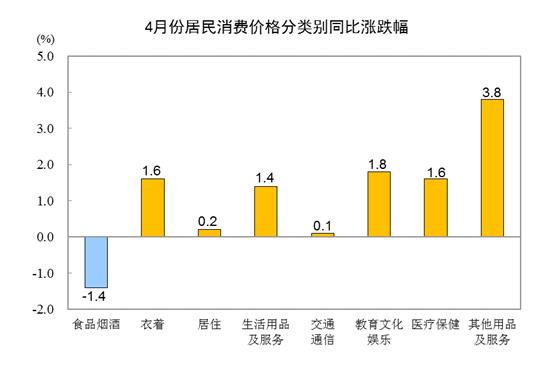 据测算,在4月份0.3%的CPI同比变动中,翘尾影响约为-0.1个百分点,今年价格变动的新影响约为0.4个百分点。