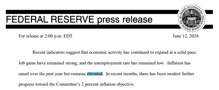 例如,在6月声明中,美联储就是这么形容的:“通货膨胀在过去一年有所缓解,但仍保持高企”。