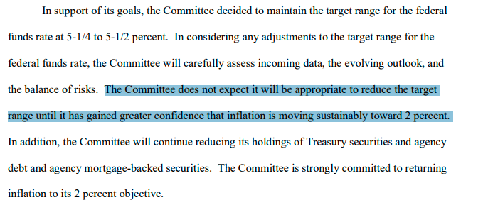 部分业内人士还表示,一旦美联储开始将通胀的描述降级为比“elevated”更温和的修辞词,那么也可能导致美联储会修改其当前政策声明中的另一句关键句子——即在对通胀持续向2%迈进有更大信心之前,降低利率目标区间是不合适的。
