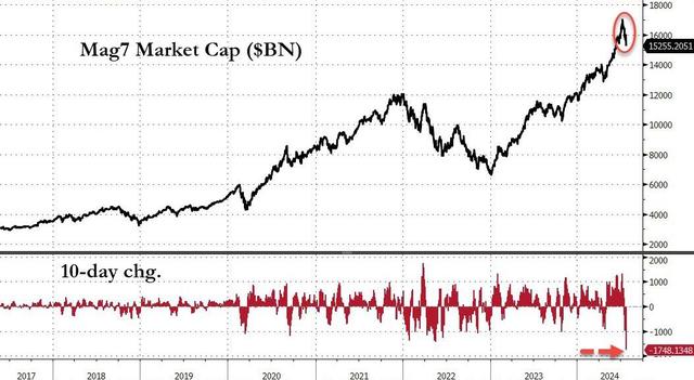 隔夜美股遭遇猛烈抛售,美股“七姐妹”市值蒸发创纪录,纳指更是大跌超3%,为400个交易日以来首次。