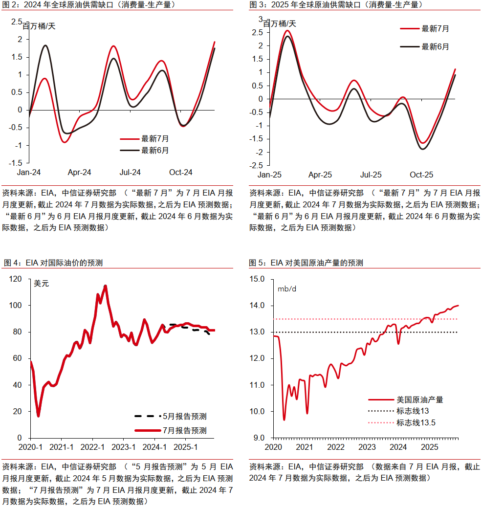 地缘政治方面,若俄乌冲突结束则将短时降低俄欧地缘政治断裂带爆发超预期地缘事件的可能性,伊以冲突在多方博弈下或难扩大化,整体看对油价影响相对有限。结合宏观经济形势、成本曲线、财政盈亏平衡线及上述主要因素的分析,我们认为未来一年油价中枢或震荡回落。