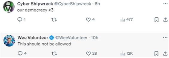 还有网友直言感叹,“(这就是)我们的民主。”“这不应该被允许。”↓