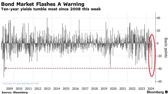 素有“全球资产定价之锚”之称的10年期美债收益率也在上周重挫了约40个基点。
