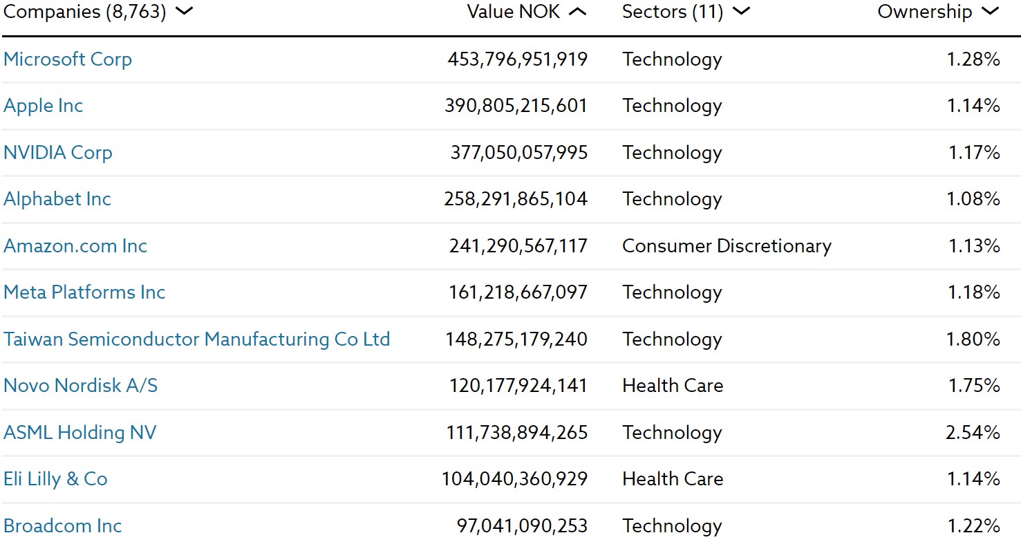 该基金将其在Meta的持股比例从2023年底的1.22%降至1.18%,截至年中价值约151亿美元。截至今年年中,该基金持有Novo 1.75%的股份,今年年初时的1.87%有所下降。同期,该基金持有的ASML股份从2.61%降至2.54%。