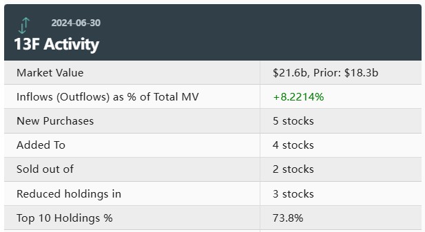 微软(MSFT.US)位列第二,持仓约534万股,持仓市值约为24亿美元,占投资组合比例为11.05%.