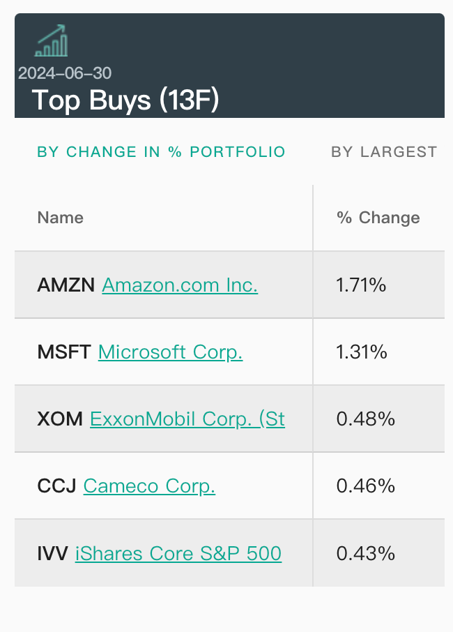 值得注意的是,亚马逊和微软进入前10大重仓股之列,挤掉了开市客和可口可乐的位置。
