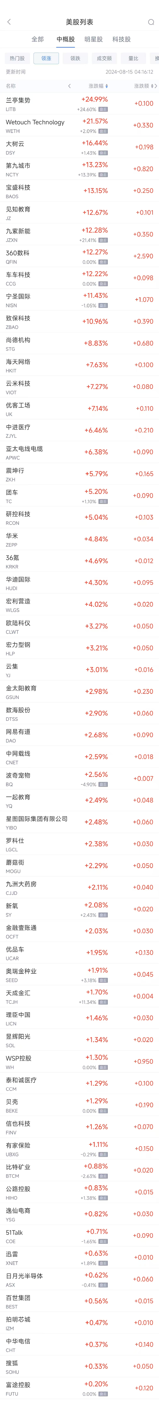 领涨中概股列表: